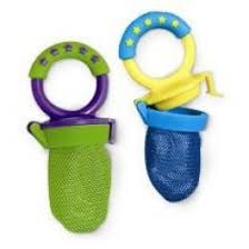 These are wonderful tools on the market. However, for my little hypotonic guy they are just made too big and the mesh bags are just too wide for him to really get into his mouth. Now, if your child can use these toys then I highly recommend them. Noah however could not because of the reasons I just stated. I found that buying some soft mesh material, putting smaller softer foods in them to start off with, and then twisting the material until it formed a small little pouch, Noah was more apt to actually accept it in his mouth. It was much smaller, didn't have this massive plastic handle to intimidate him, and still provided the same type of teether but more suited to his aversions and weak mouth. I liked to start off with diced canned pears or peaches. They kind that are cut into tiny squares and were soaked long enough in the juices to soften them just right and provide some intense fluid flow in his mouth. You can also try chunky applesauce or mushed avocado or carrots. The mesh will trap any pieces so they do not choke and over time they learn to trust the mesh material and will accept it more and more. The thing that I liked the most was that he learned to take on the juice and fluids from the different types of foods without having to actually swallow the chunks. After he mastered a certain type of food using the mesh I would do it again but add the smallest of pieces of the food directly into the same side of his cheek so that now he would feel the substance and have to swallow it. Avocado worked best for Noah since it was smooth and soft and not full of too much juice like the fruit. You can then eventually work up to testing just the fruit piece by piece into their mouth without the mesh cloth. ****I would cut tons of these clothes and then throw them away after one use. Just make sure the cloth you use is strong enough to not fall apart in their mouth from using their teeth.
